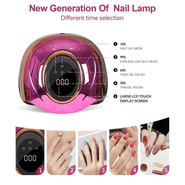 Get salon-quality nails at home with this powerful 380W Nail Dryer LED Lamp. Designed for fast and even curing of all gel polish types, it features advanced LED technology and multiple timer settings for a smooth, hassle-free experience.