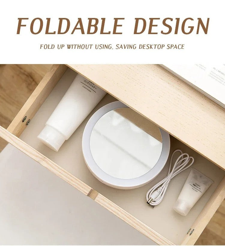 Foldable LED Makeup Mirror USB Rechargeable 360° Lighted Vanity Mirror